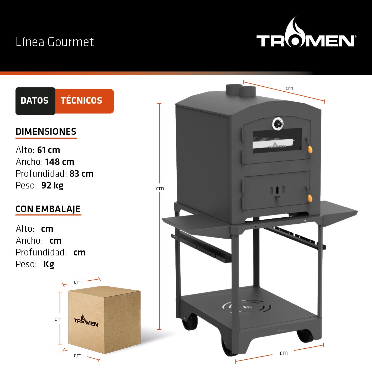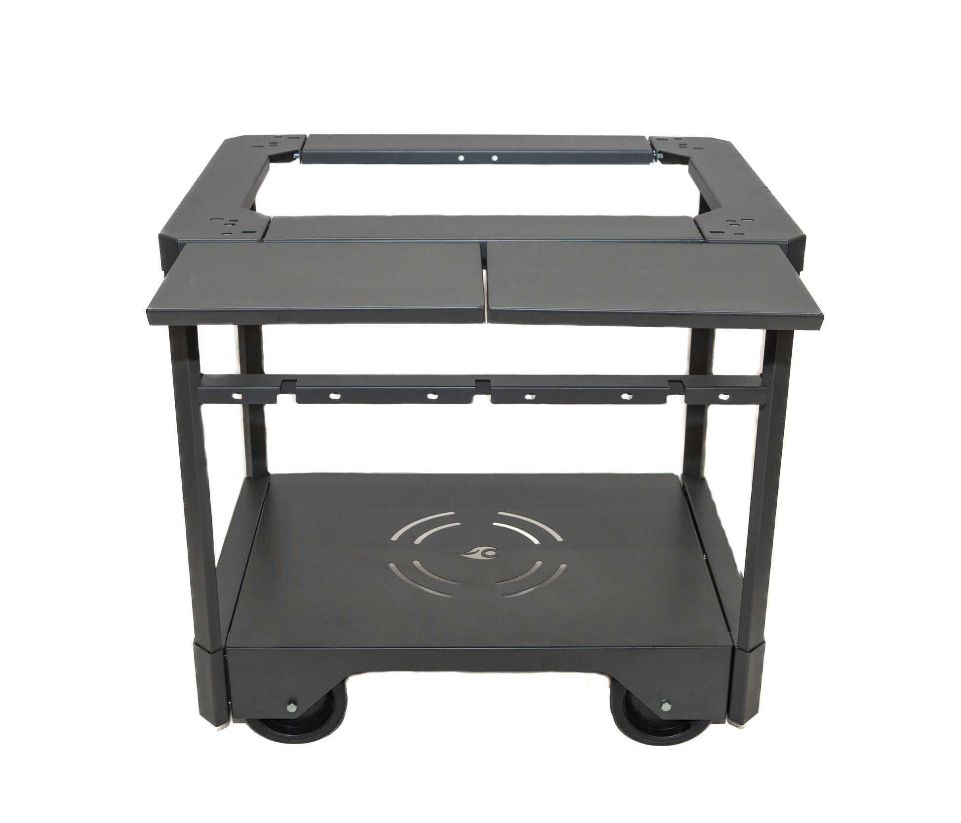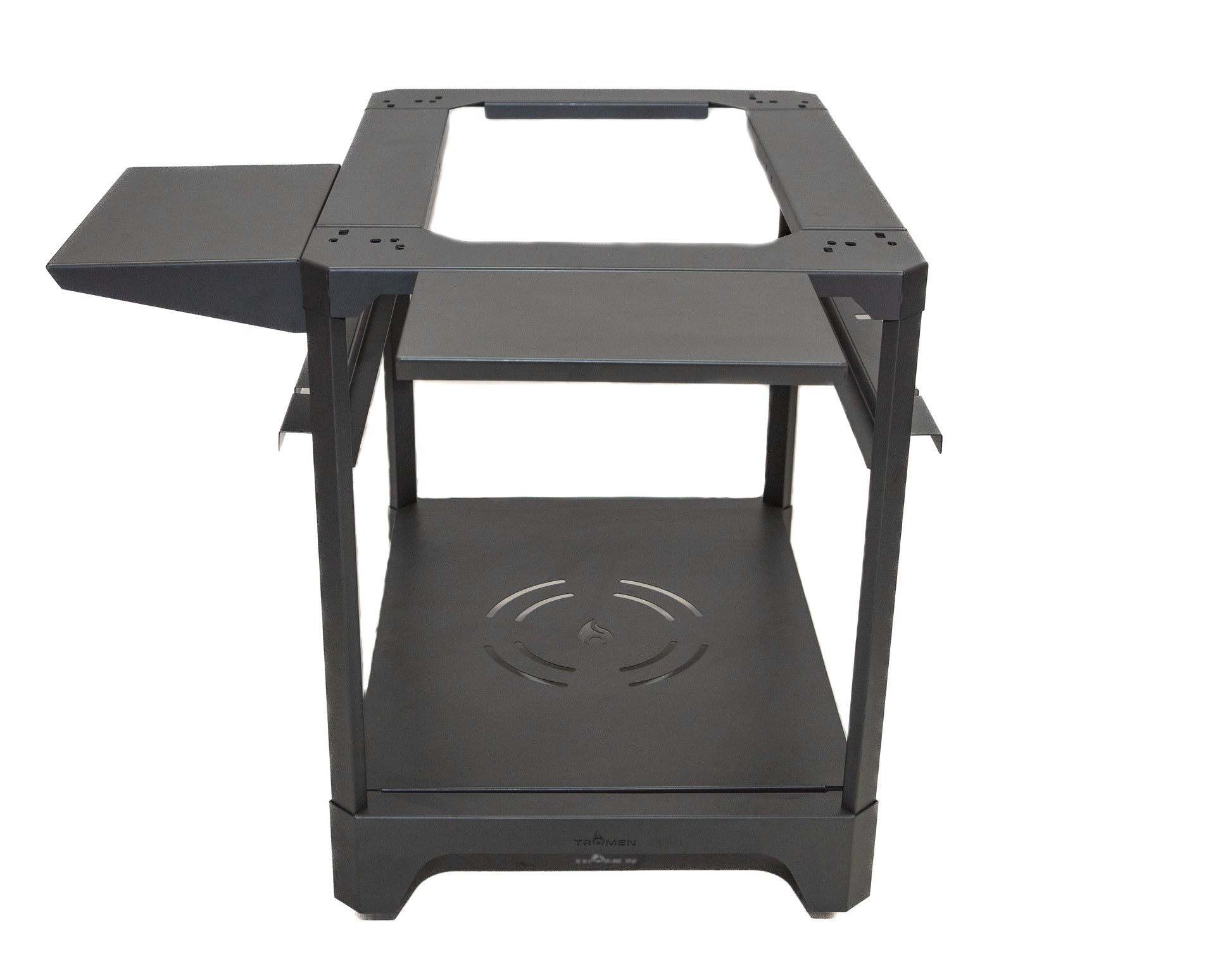 Además, cuenta con tablas laterales y una base inferior ideales para colocar accesorios, utensilios o leña, manteniendo todo al alcance de la mano.