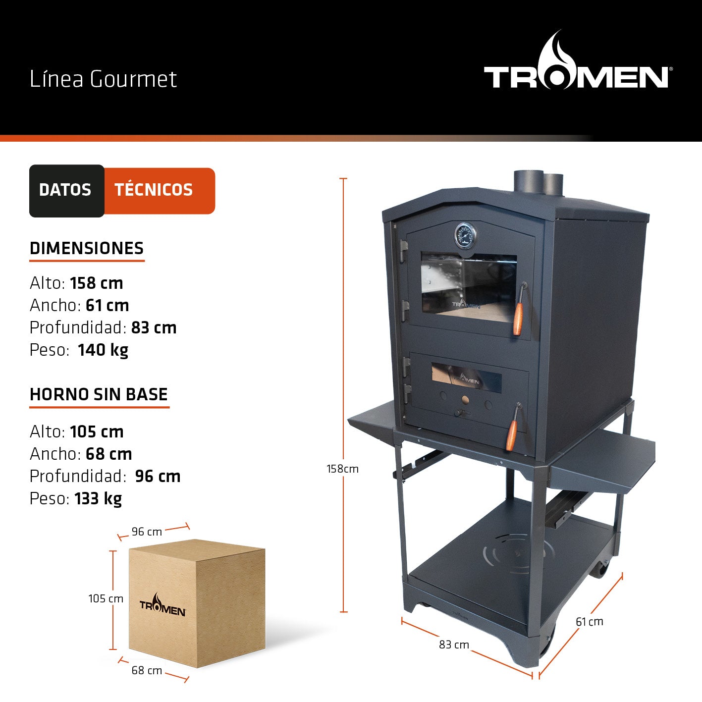 La Base para Hornos es compatible con los modelos TRH y Tango, e incluye ruedas que facilitan su desplazamiento.